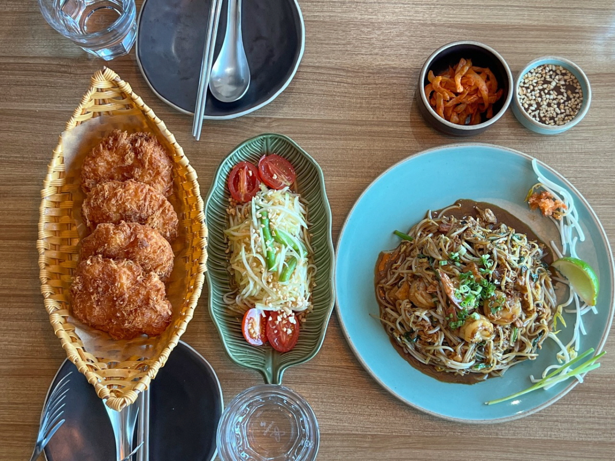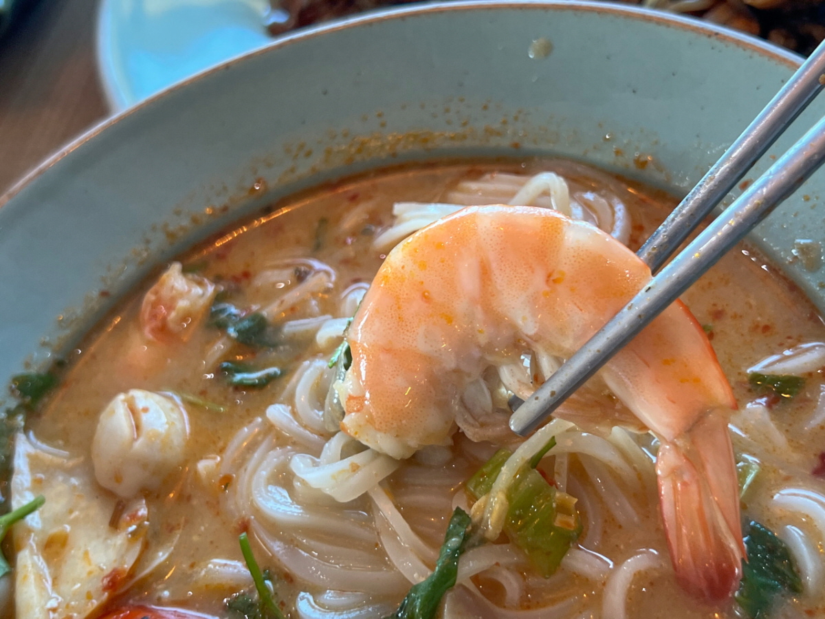 가장 먼저 손이 갔던 똠얌꿍은 국물이 있는 면 요리로 세계 3대 수프로 불린답니다. 처음 먹어보시는 분들은 호불호가 갈릴 수 있지만 한국인 입맛에도 잘 맞게 밸런스를 잡으셨더라구요.