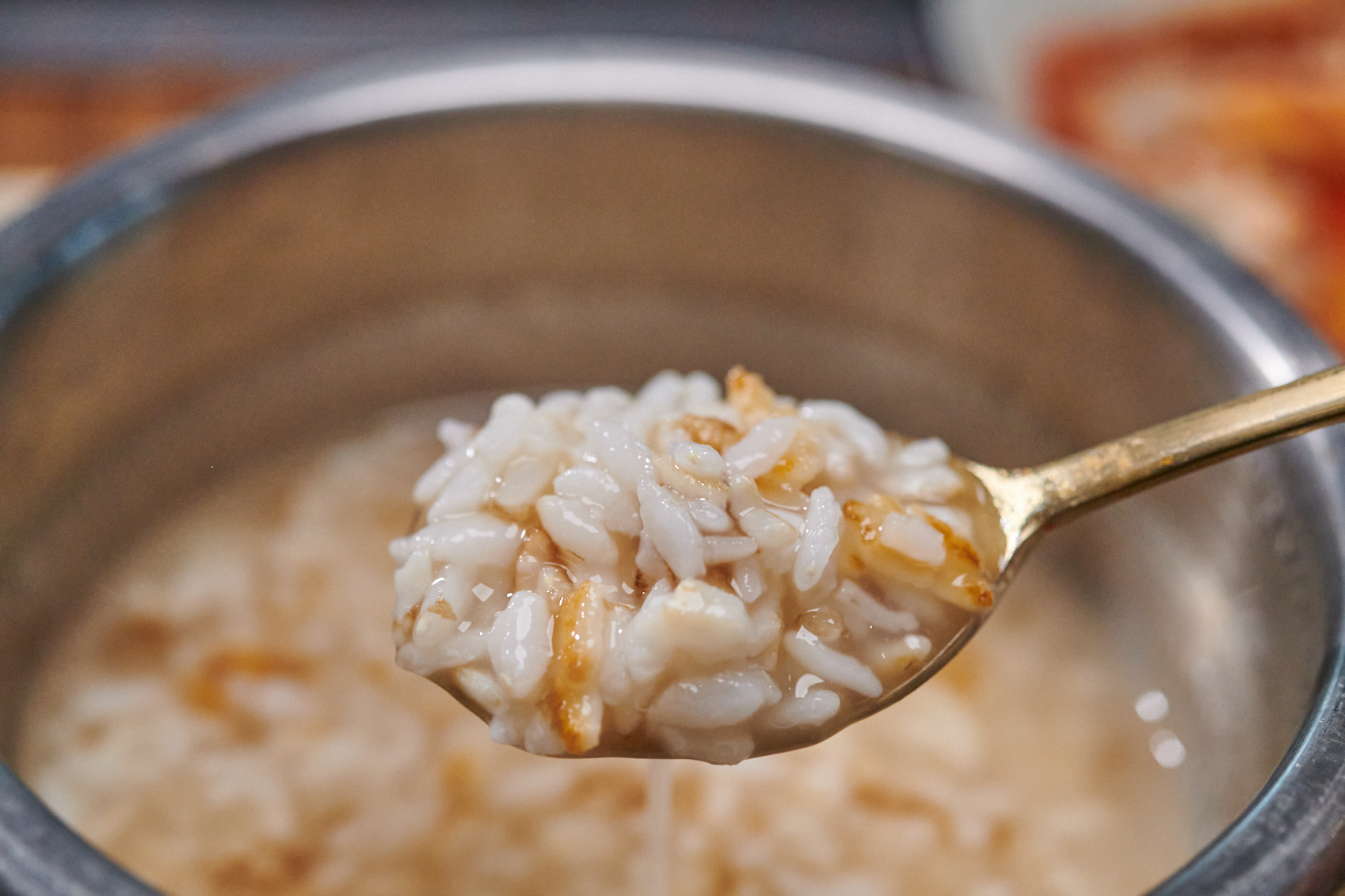 이런 갈치구이에는 당연히 고슬고슬하게 잘 지어진 즉석 솥밥이 필수죠. 찰기가 있어 밥알이 촉촉했고 마무리로 뜨거운 물을 부어준 뒤 누룽지도 해먹을 수 있어 좋았어요. 아까말씀드린대로 제주도 맛집의 밥은 주문 즉시 조리되어 밥만 먹어도 맛있었습니다.