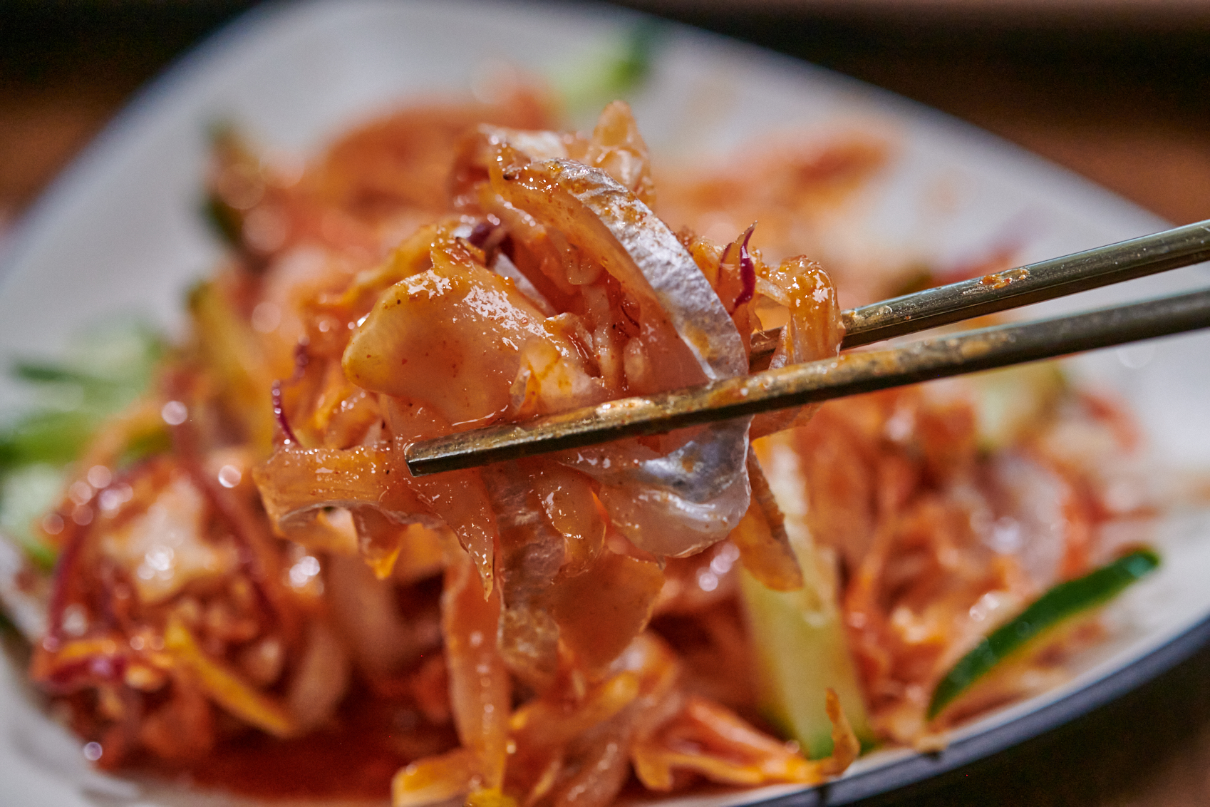 이어서 추가된 메뉴는 제주도 맛집의 은갈치 회무침과 회 입니다. 고등어회는 서울에서 많이 먹어봤었는데 이거는 저는 처음먹어보았어요. 은갈치회 한 점을 집어 새콤한 초장에 푹 찍어 먹어보니 입안에서 바다향이 퍼지더라고요. 싱싱함을 그대로 느낄 수 있었어요. 새콤달콤한 양념장에 신선한 야채와 은갈치회를 비벼 한입 먹어보니 또 리필하고 싶더군요.