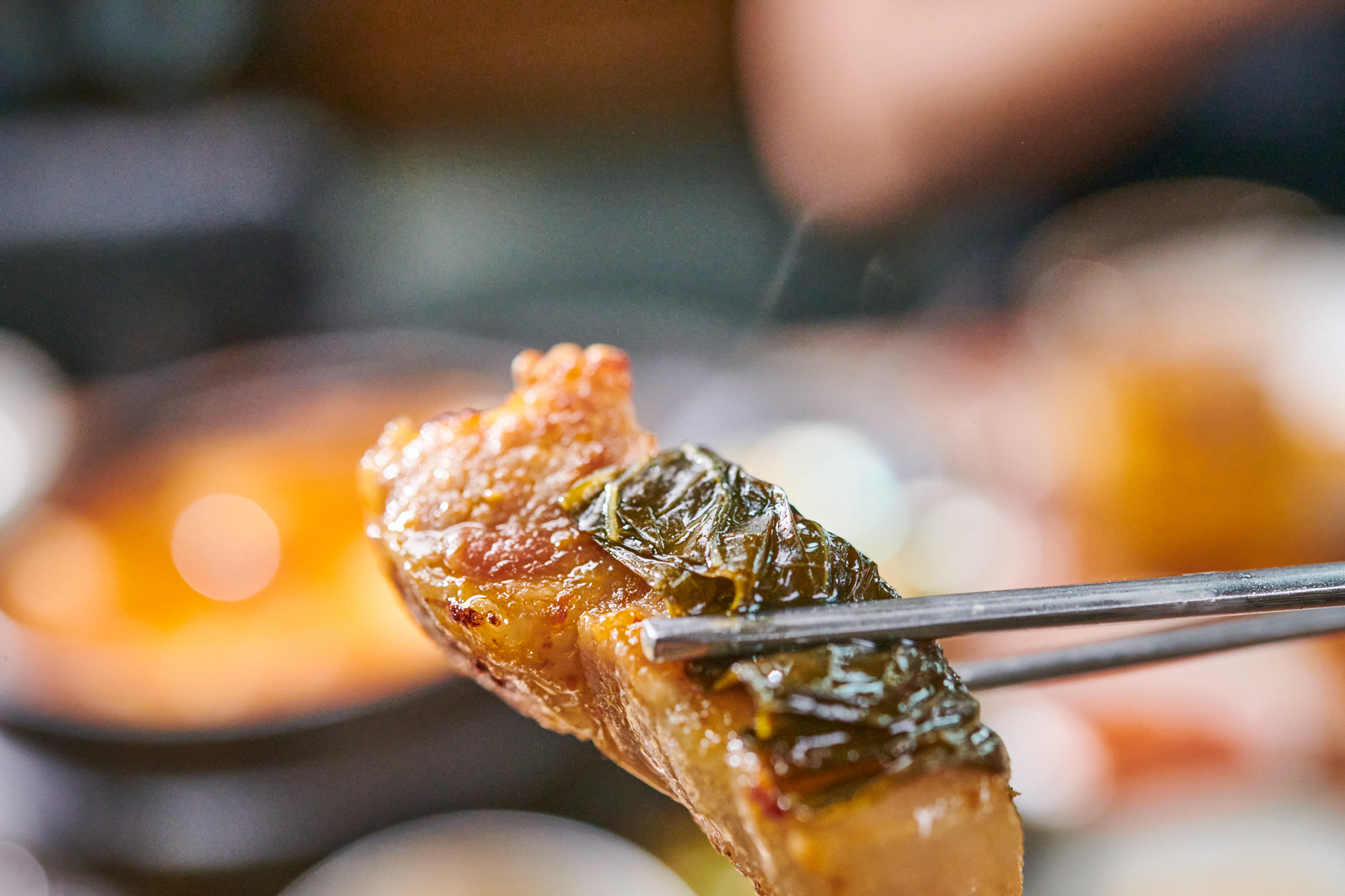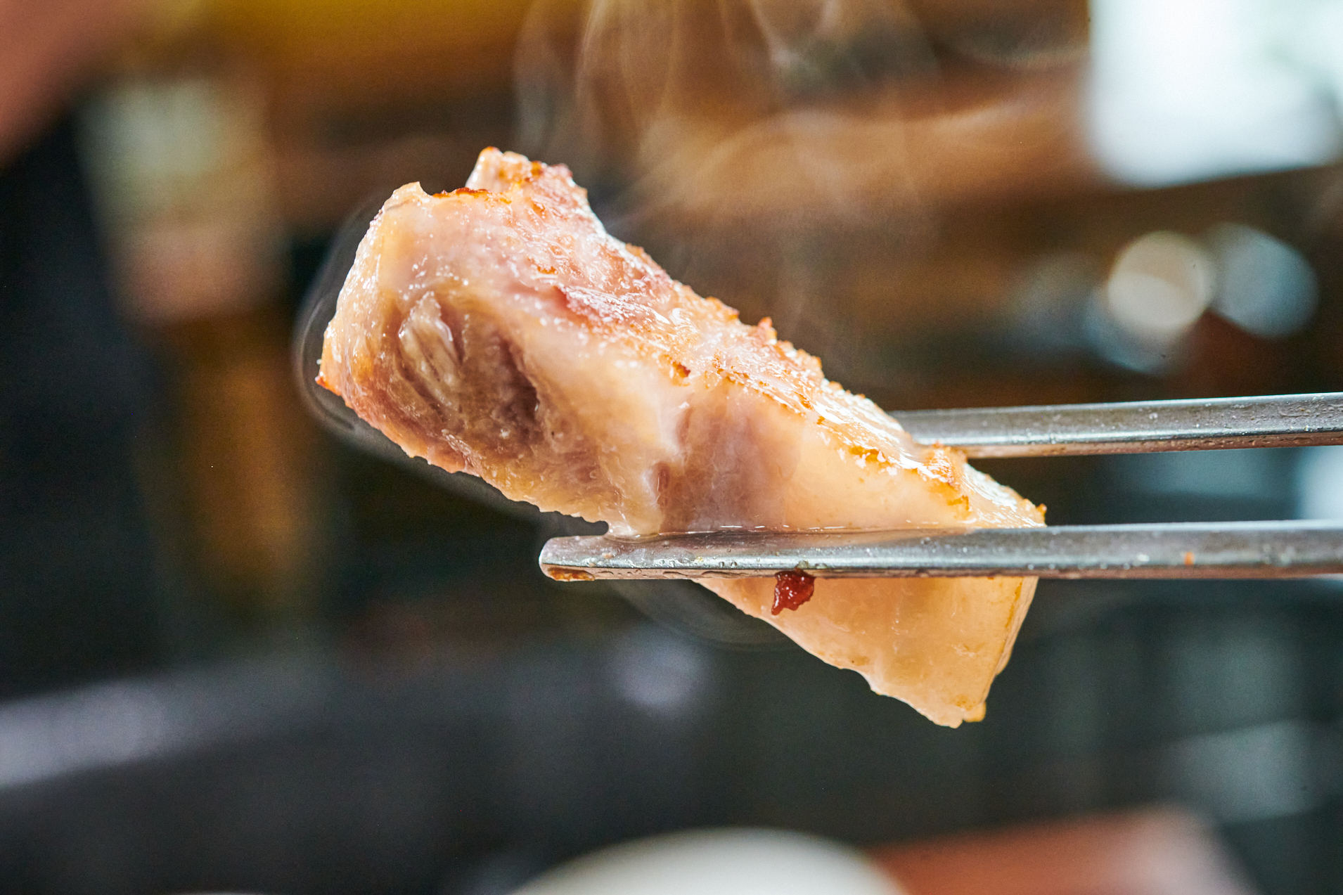 곧바로 살코기를 집어서 와사비만 살짝 얹어 한 점 먹어봤는데, 소스 없이도 완벽할 만큼 담백한 육즙이 정말 일품이었습니다! 불맛이 입안에서 포근하게 느껴지면서 식감도 좋아서 씹는 내내 감탄이 절로 나왔어요. 파와 함께 먹어도 굉장히 좋았어요.