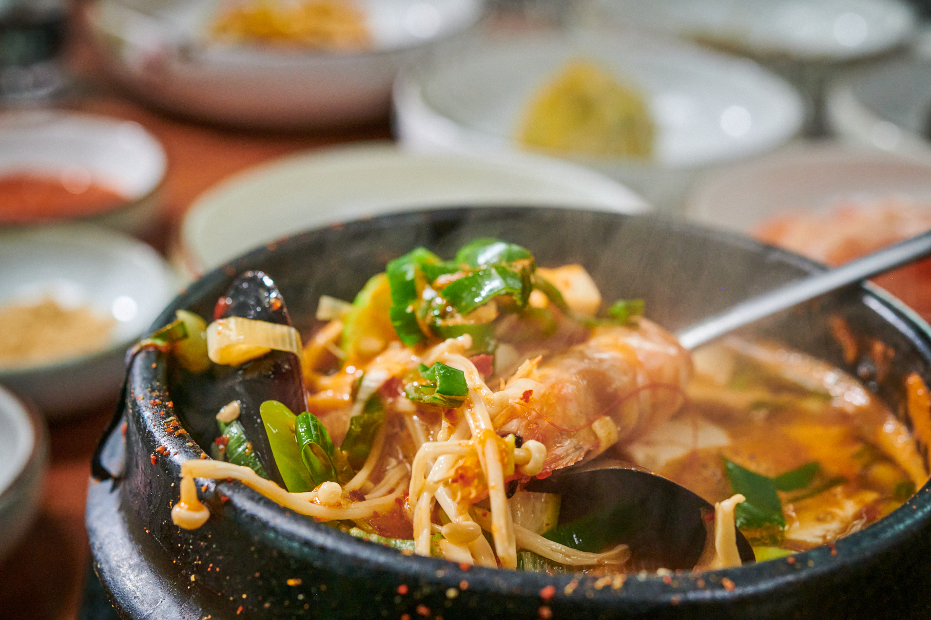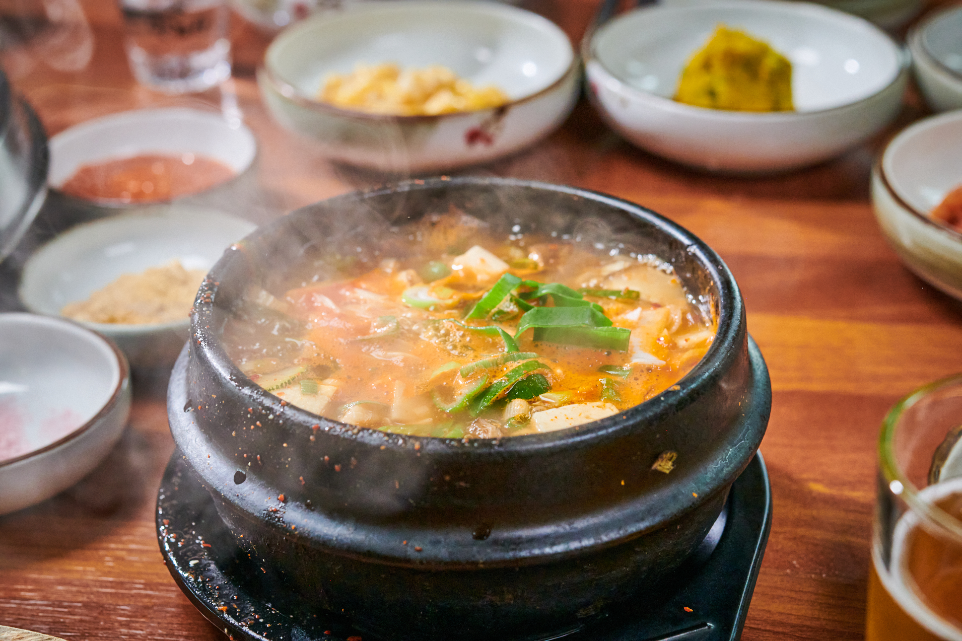 식사의 대미는 구수한 해물 전복뚝배기로 마무리했어요! 제주 애월 맛집의 뚝배기는 해산물이 가득 들어 있어 깊은 맛이 나더군요. 특히 전복과 새우가 엄청나게 커서 2미가 들어가 있더라고요. 바글바글 끓고 있는 상태로 나와서 뜨거운 국물을 한 입 맛보니 속이 절로 데워졌습니다. 정신이 번쩍 깨는 뜨거운 국물에 갓 만든 듯한 두부까지 더해져 정말 든든하게 마무리했어요. 포만감이 제대로 느껴졌습니다!