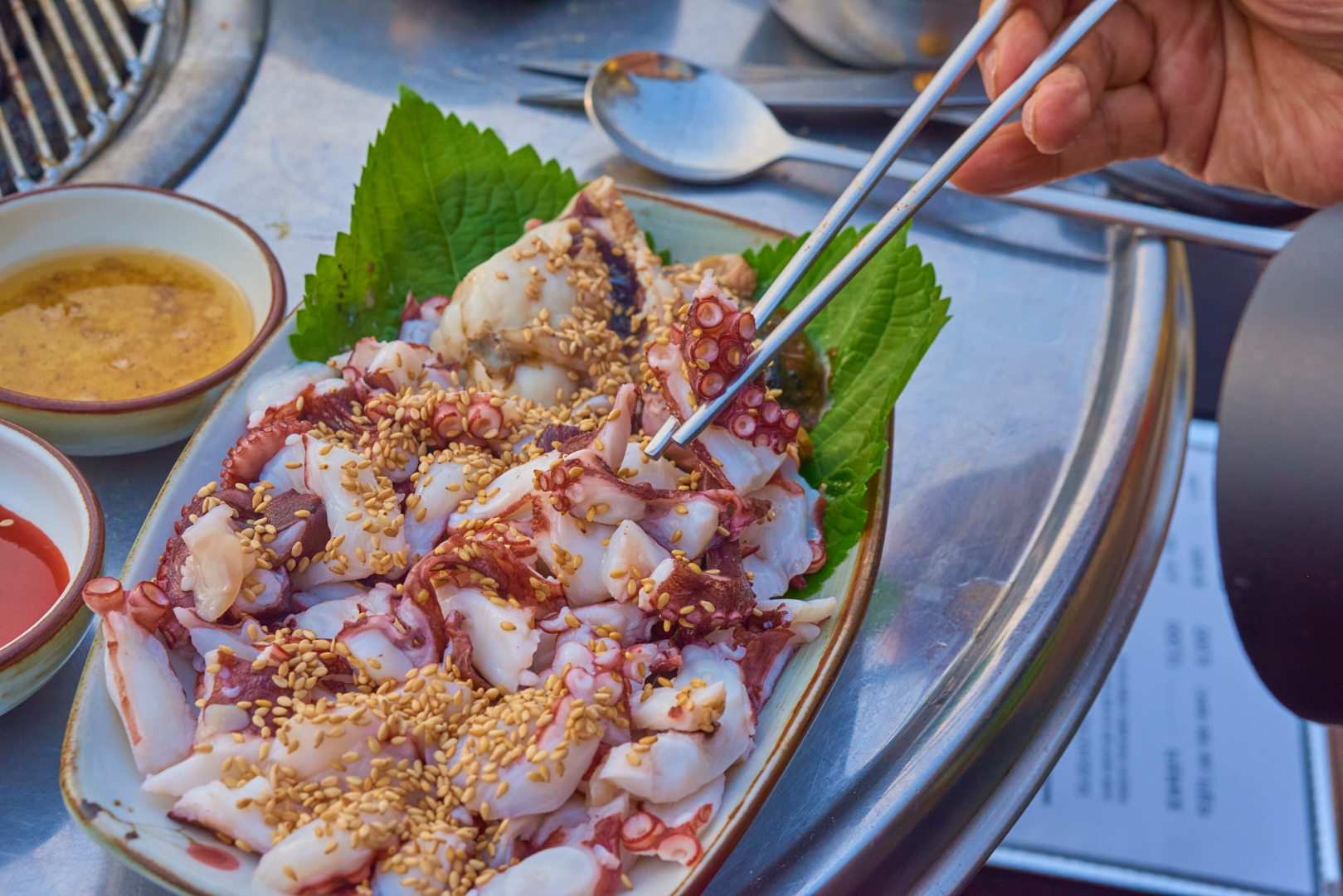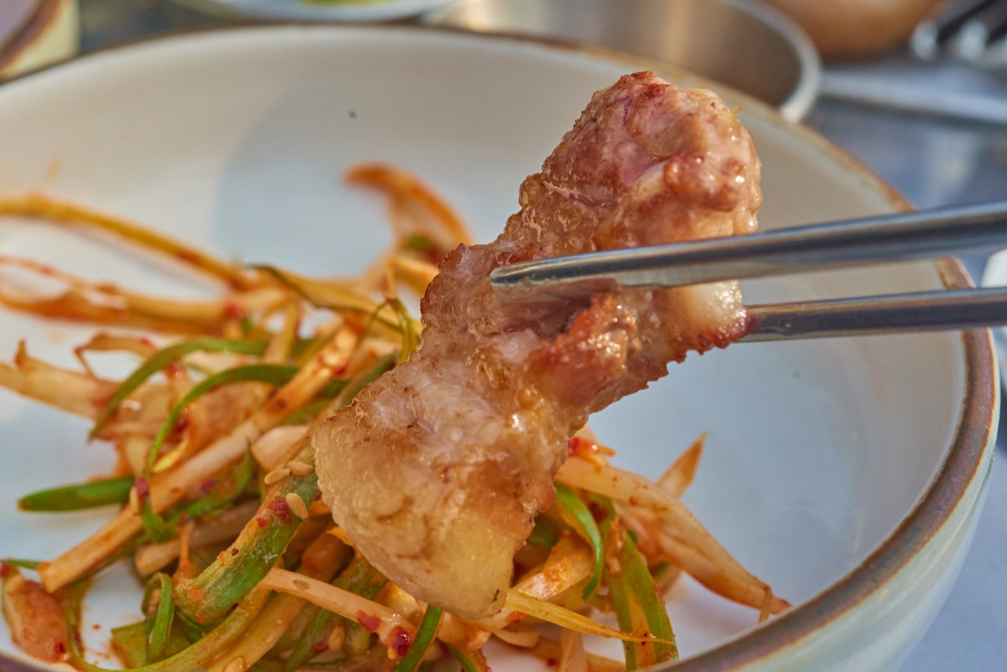 고기를 어느 정도 먹으면 질릴법도한데 살코기와 비계가 적절하게 섞인 고기맛은 질림틈새도 없이 묵직한 맛을 계속 느껴볼 수 있었어요. 먹기 좋게 손질해주시는데 쫄깃함과 육향이 굉장하더라고요. 물릴 틈이 없어서 즐거운 식사의 연속이였습니다!